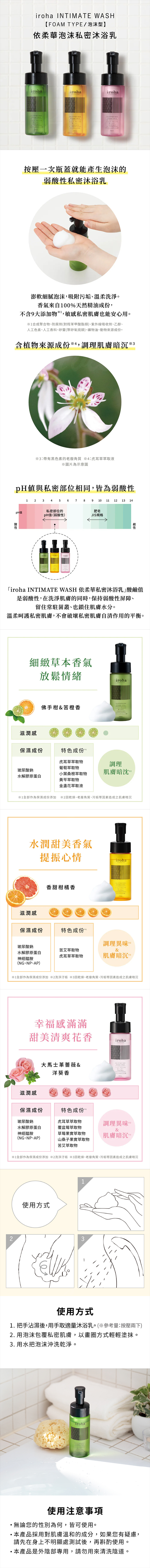iroha INTIMATE WASH|依柔華私密沐浴乳 泡沫型-150ml 佛手柑+苦橙