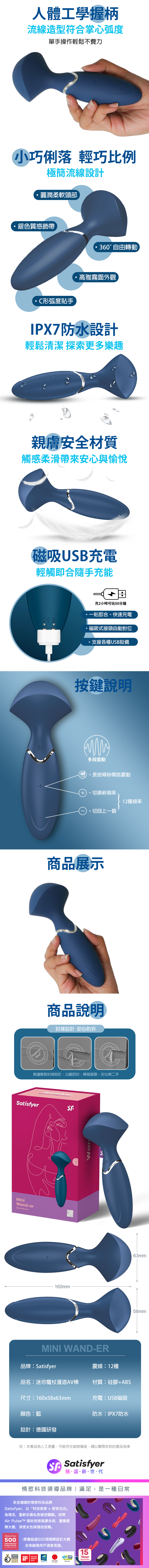 Satisfyer|Mini Wand-er|迷你魔杖漫遊 AV按摩棒 藍