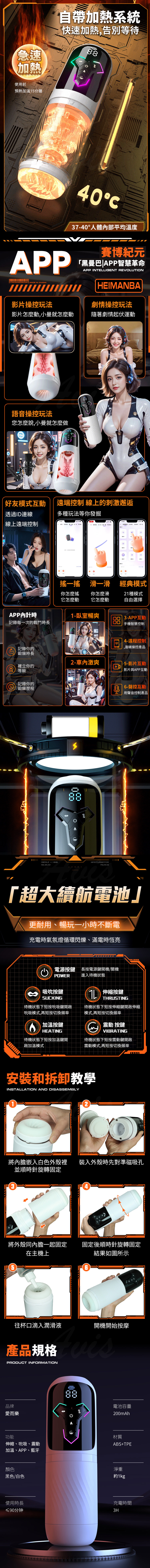 商品名稱:黑曼巴|吸吮 伸縮 震顫|狂暴電動飛機杯 智能款